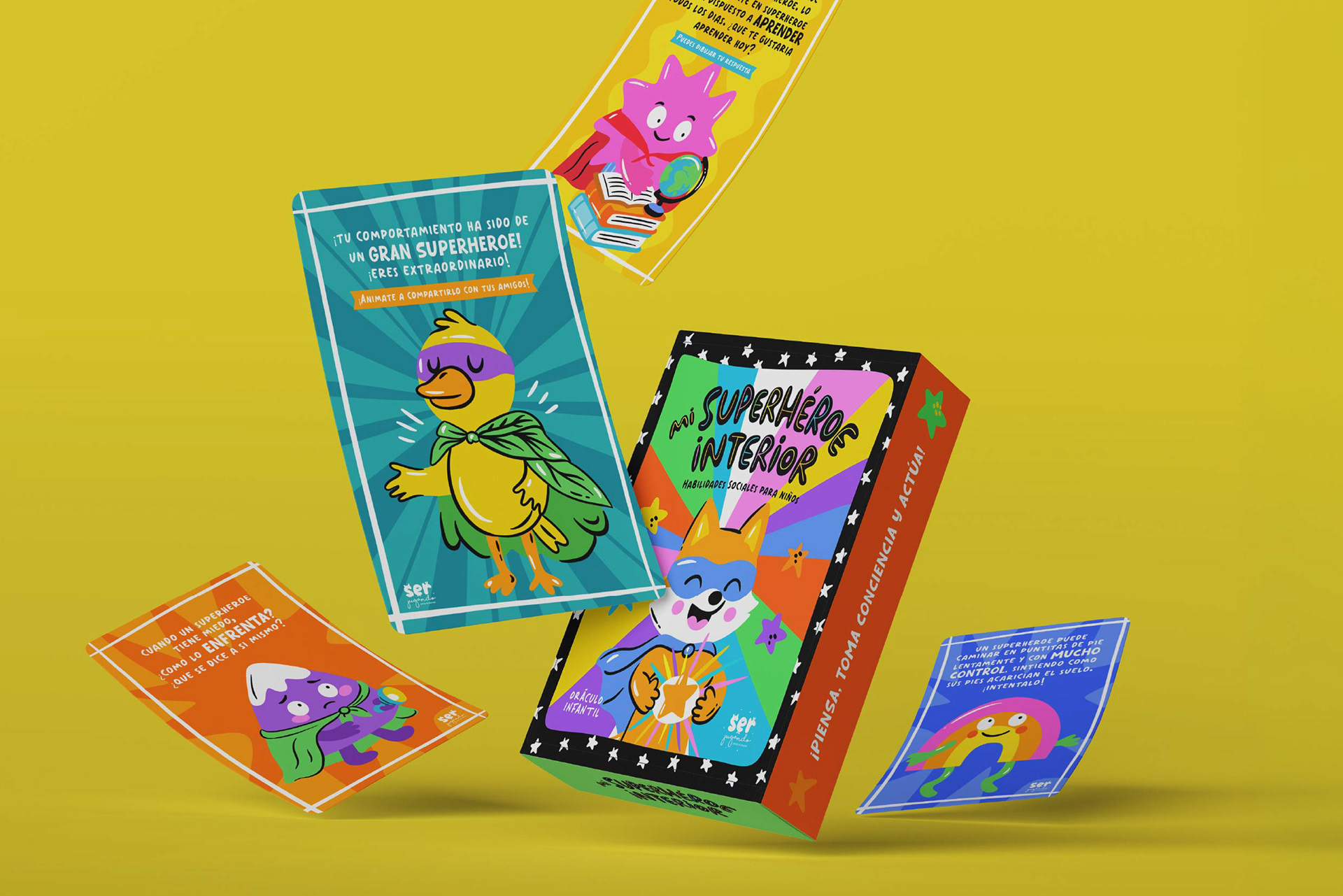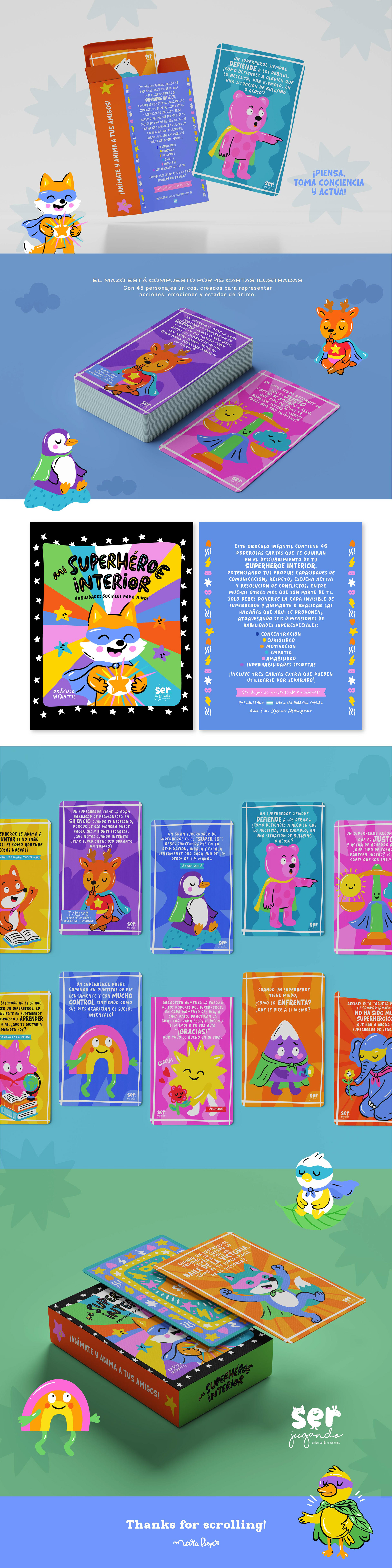 Cada carta propone desafíos, preguntas y hazañas de superhéroe que invitan a pensar, darse cuenta y actuar, creando un espacio de autodescubrimiento y juego compartido entre infancias y adultos.